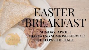 Join us for Breakfast following our Easter Sunrise Service on April 5 in the Fellowship Hall.
