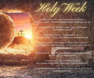 HOLY WEEK SERVICES – March 30-April 3 – 12:00 noon